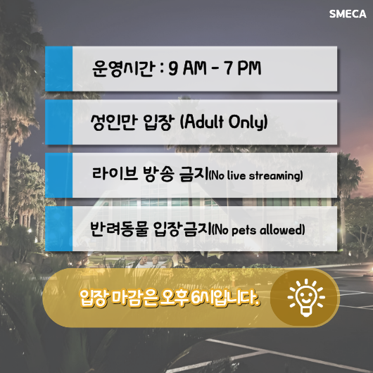 | 봄,여름,가을 | 02월 ~ 11월 | 오전 9시 | 오후 7시 |